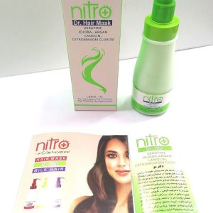 ماسک موی بدون آبکشی دکتر موی نیترو پلاس حاوی کراتین و عصاره های طبیعی از جمله روغن جوجوبا، روغن آرگان، لانولین و ستریمینیوم کلراید بود و موخوره، وز، شکنندگی و خشکی را برطرف می کند.